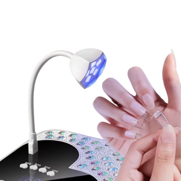 UV/LED lampa na nechty, pokrytá kamienkami, LCD displej v tvare srdca.