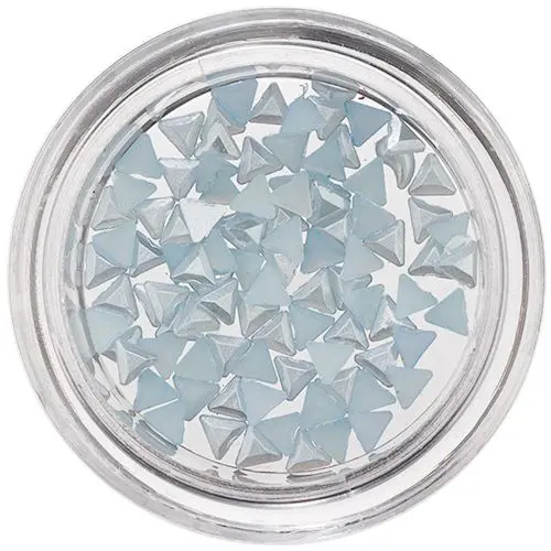 Svetlomodré trojuholníky slúžiace ako nechtové ozdoby s perleťou na povrchu. Ideálne na zdobenie prírodných, gélových a akrylových nechtov, ako aj do aqua tipov. Vďaka nechtovým ozdobám získate jedinečný a originálny vzhľad vašich nechtov, ktorý sa len tak nevidí.
